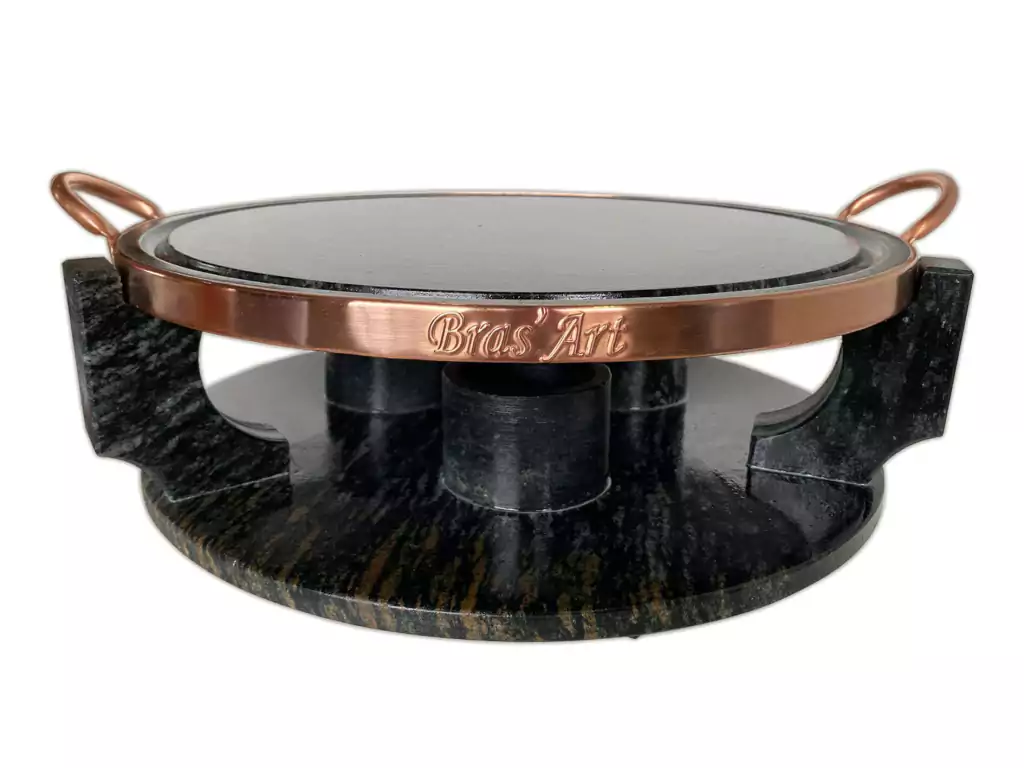 - Acompanha: Grelha com Alças e contorno de cobre, metal nobre fixos na grelha, Fogareiro e tampinhas para apagar a chama quando finalizar