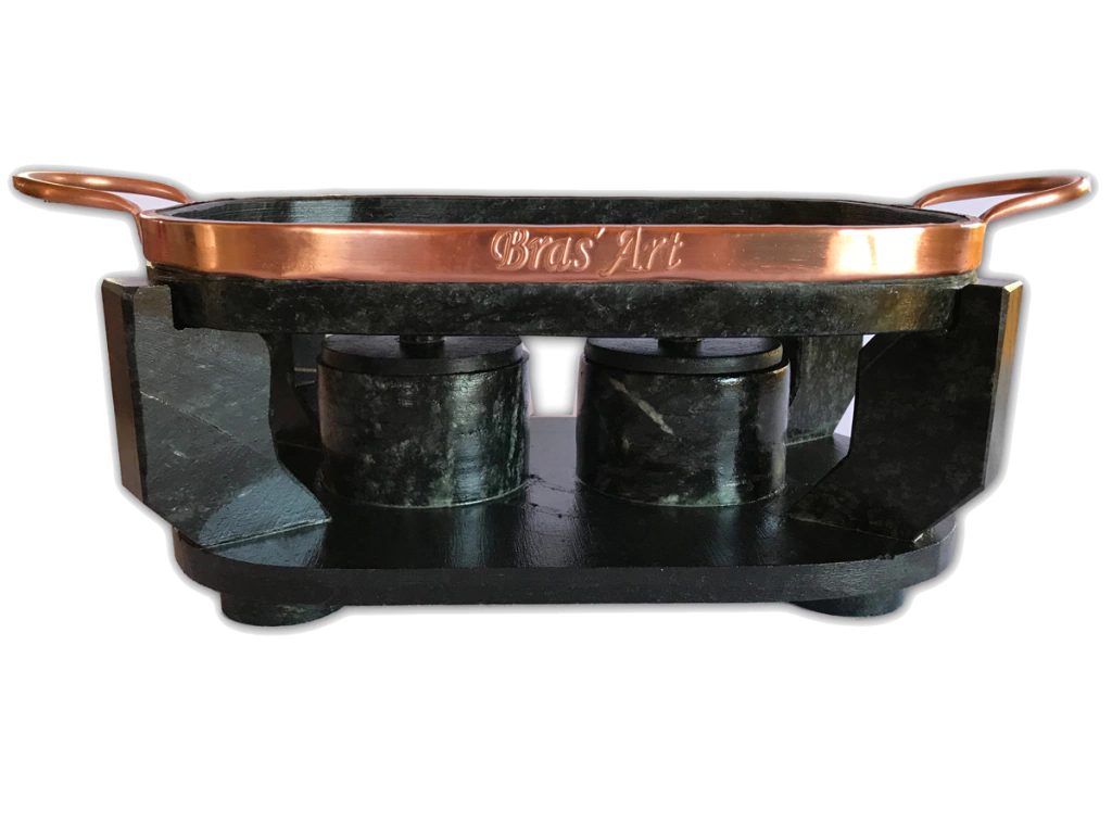 Este fondue em pedra sabão é uma peça única e artesanal, feita 100% com pedra sabão, uma rocha natural e livre de metais pesados. Ele oferece retenção de calor excepcional e distribuição uniforme, mantendo as carnes no ponto perfeito, sem perder o sabor ou a suculência. Com seu design polido e superfície antiaderente natural, este fondue combina funcionalidade e estilo, tornando-o ideal para encontros aconchegantes e duradouros