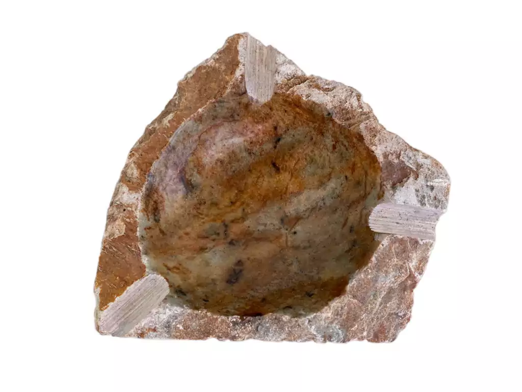- A pedra sabão por ser um produto natural possui veios naturais, que está presente em 95% da rocha, sendo uma característica comum da pedra sabão, sendo somente estética isso não afetara na durabilidade e nem na funcionalidade do cinzeiro.