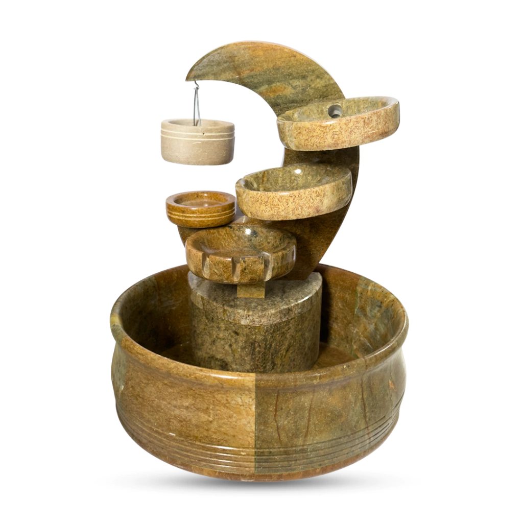 A fonte fabricada 100% em Pedra Sabão, não só embeleza o ambiente, mas também melhora a qualidade de vida, o som suave da água corrente contribui para uma sensação de serenidade e equilíbrio, tornando qualquer ambiente mais tranquilo e acolhedor, pode ser utilizado essências para aromatizar o ambiente, a fonte também umedece o ar quando ligada, o que a torna ideal para ser colocada em quartos e salas ajudando a melhorar a qualidade do ar e promovendo um ambiente mais saudável e confortável.