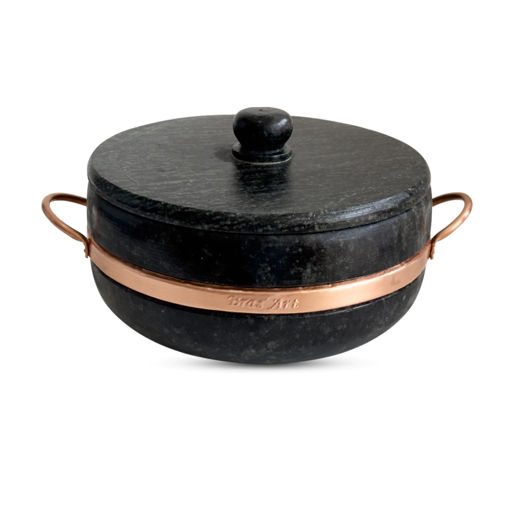 Nossa panela de pedra sabão é a escolha perfeita para quem busca uma alimentação saudável e quer manter os alimentos sempre quentinhos! Feita 100% com pedra sabão uma rocha natural, sem metais pesados, essa panela preserva o sabor dos alimentos e libera minerais essenciais para a sua saúde.
