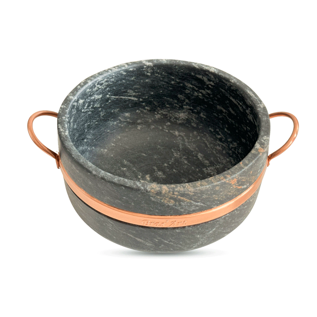 - Acompanha: Alças e contorno de cobre, metal nobre fixos na panela.