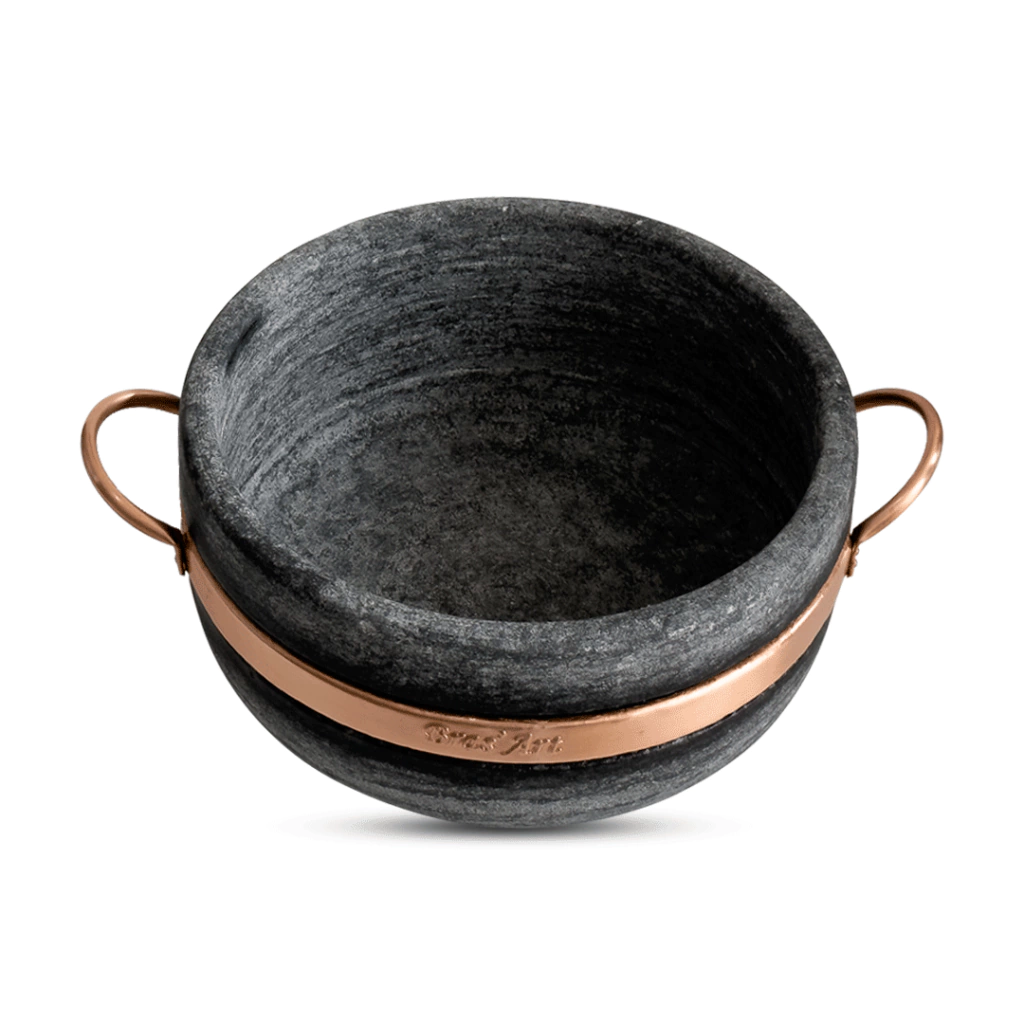 - Acompanha: Tampa de pedra sabão,Alças e contorno de cobre, metal nobre fixos na panela.