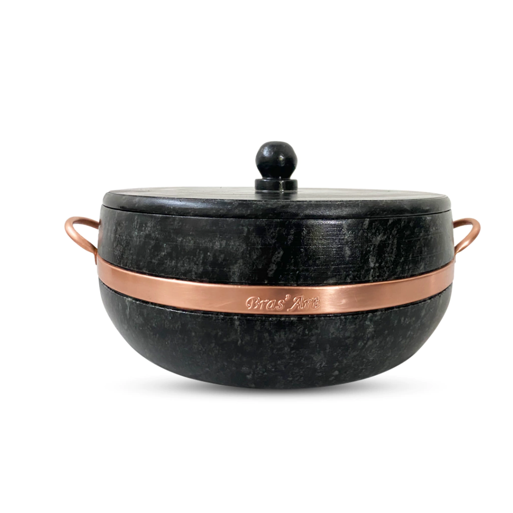 Nossa panela de pedra sabão é a escolha perfeita para quem busca uma alimentação saudável e quer manter os alimentos sempre quentinhos! Feita 100% com pedra sabão uma rocha natural, sem metais pesados, essa panela preserva o sabor dos alimentos e libera minerais essenciais para a sua saúde.