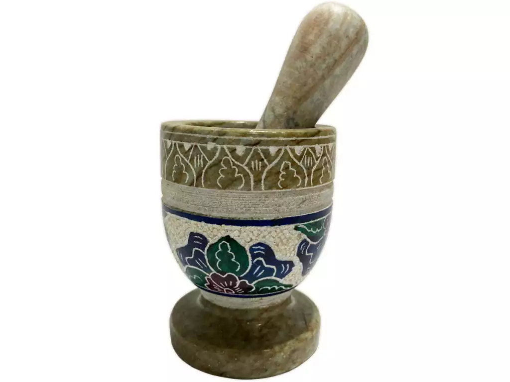 Pilão Decorativo 12 cm em Pedra Sabão com um bordado maravilhoso