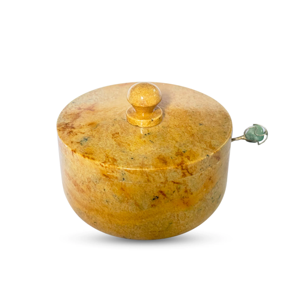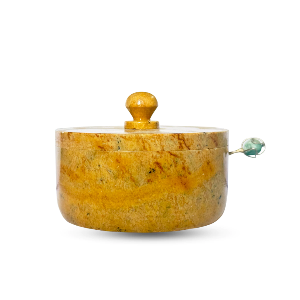 - Acompanha: uma colherzinha de metal com uma pedra semipreciosa na ponta do cabo
