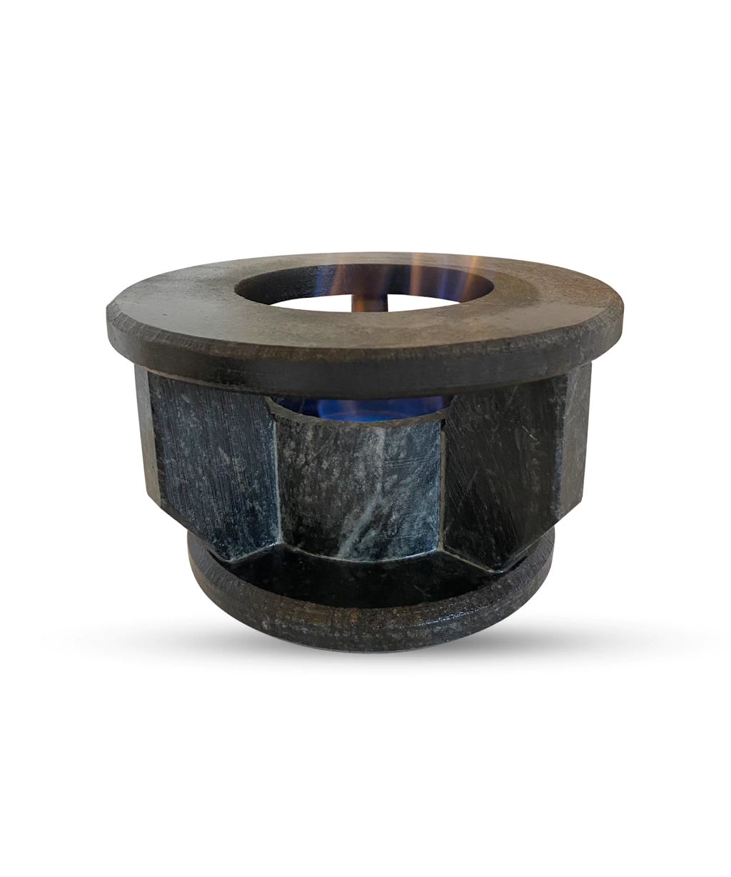 - Para acender o seu rechaud de pedra sabão, basta adicionar álcool líquido (acima de 70%), gel ou pastilhas em seu recipiente. Em seguida, acenda com um fósforo ou isqueiro e pronto! O fogo irá se propagar pela base, aquecendo de maneira eficiente diversos tipos de recipientes, como grelhas, panelas e outros utensílios de cozinha.